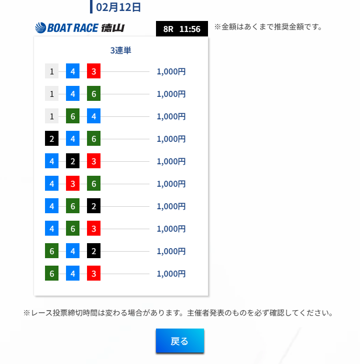 予想は1日に2回。昼、夜のレースが公開される仕組みとなっています。