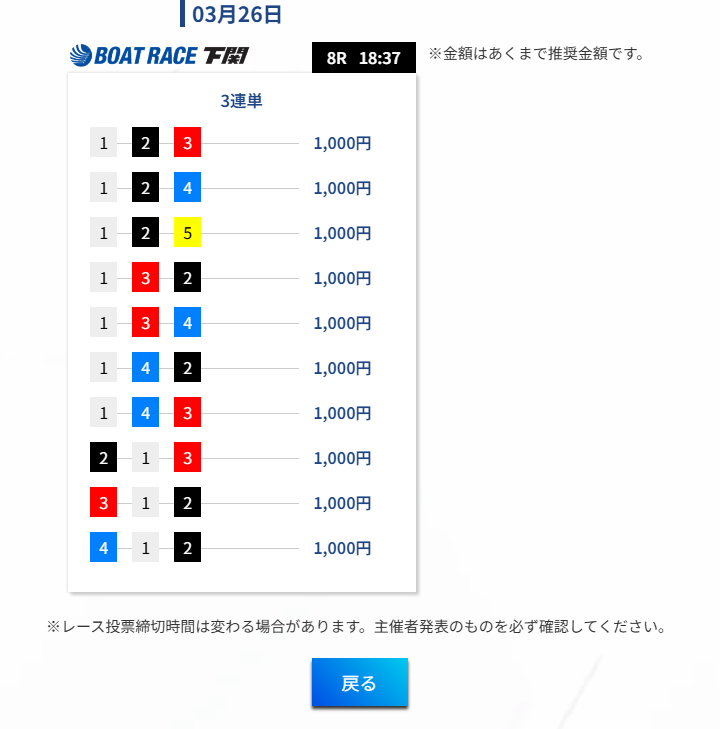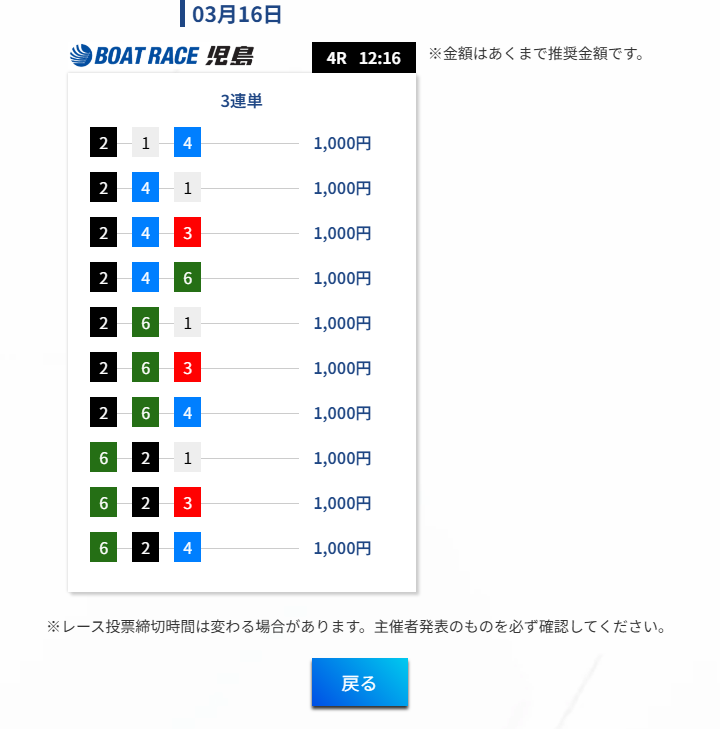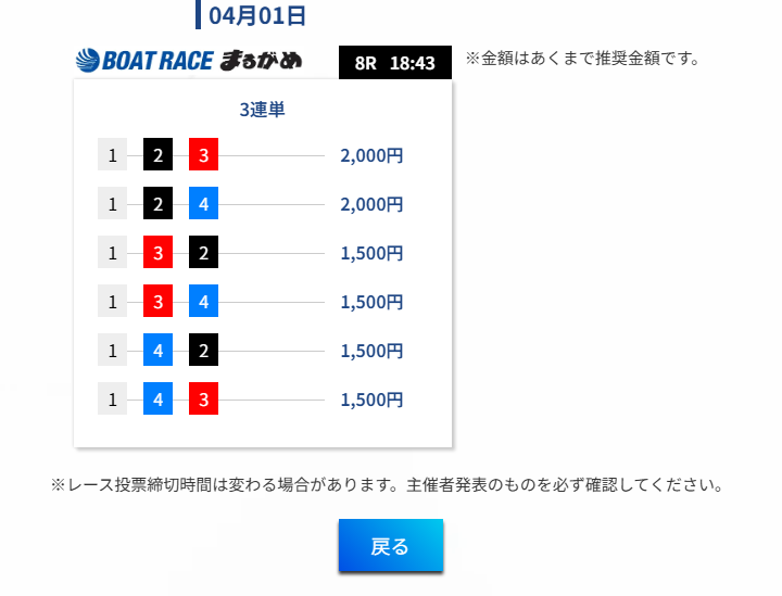 予想は1日に2回。昼、夜のレースが公開される仕組みとなっています。