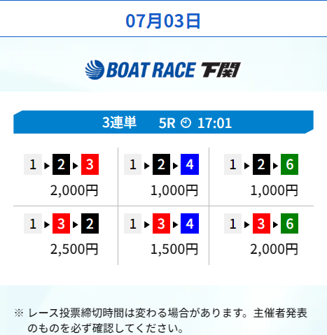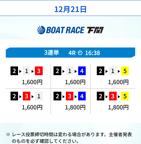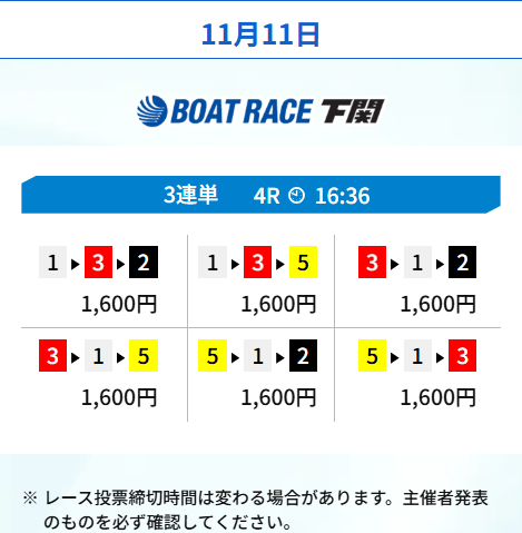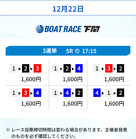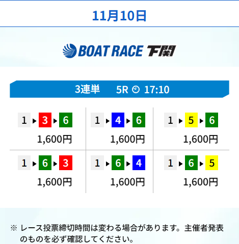 続いてはボートレース下関の2レースを転がすプランを利用。