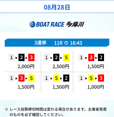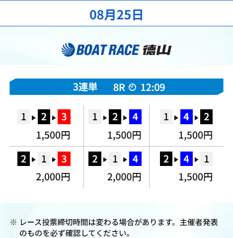 インが強いボートレース徳山のレースの予想がこの日は届きました。