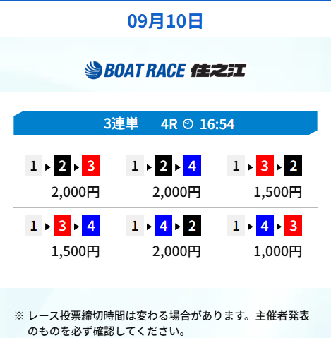 | 買い目 | 2~10点(3連単) |