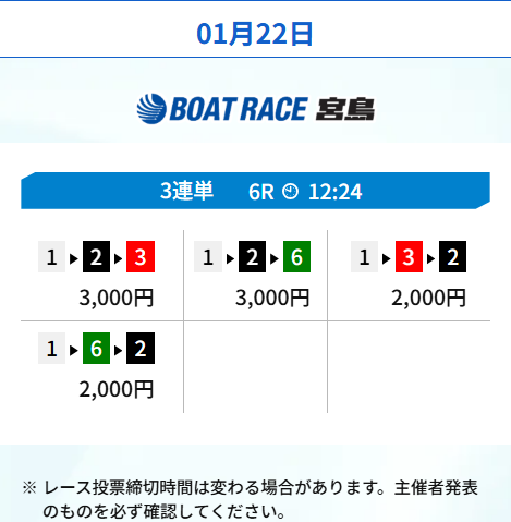 | レース数 | 宮島6R |