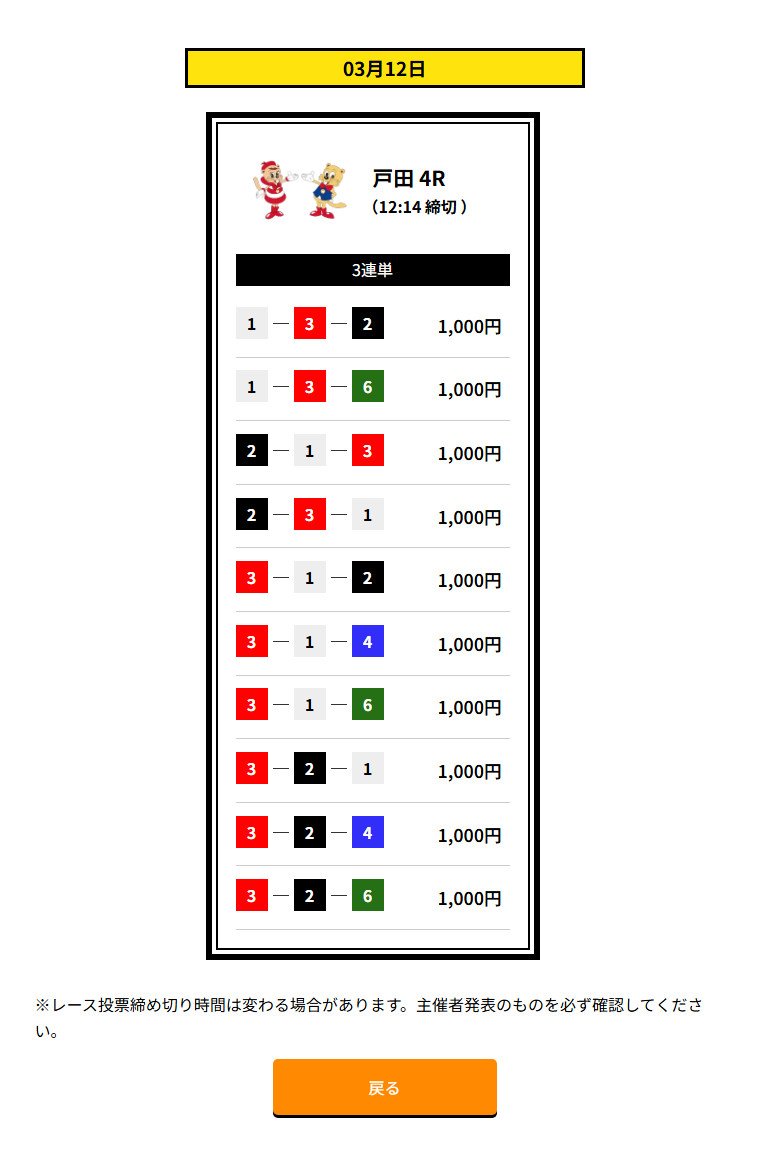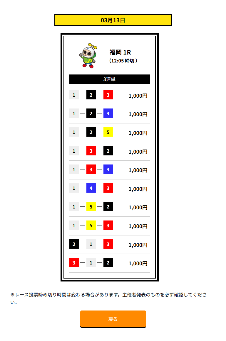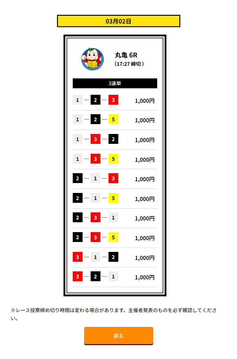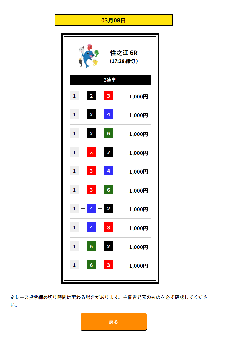 | 買い目 | 3点~10点(3連単) |