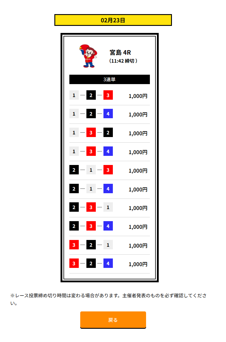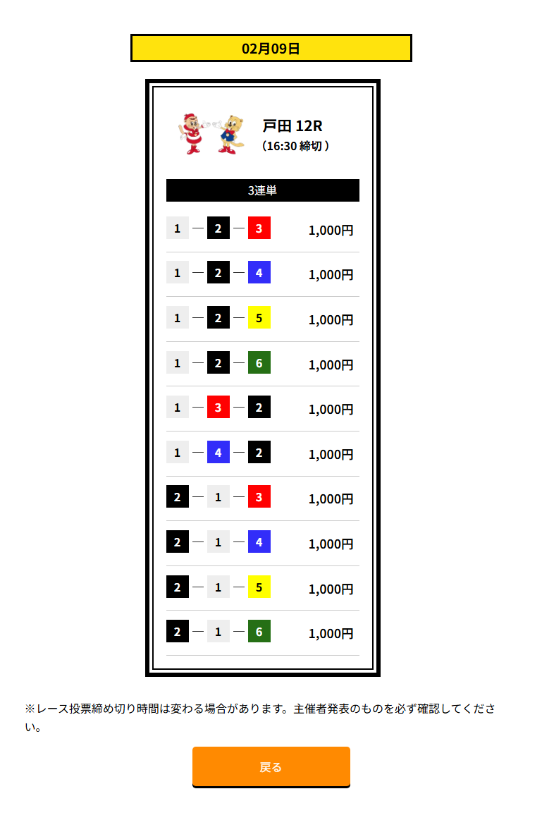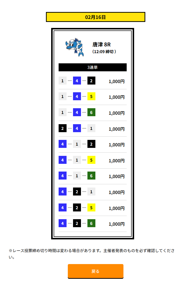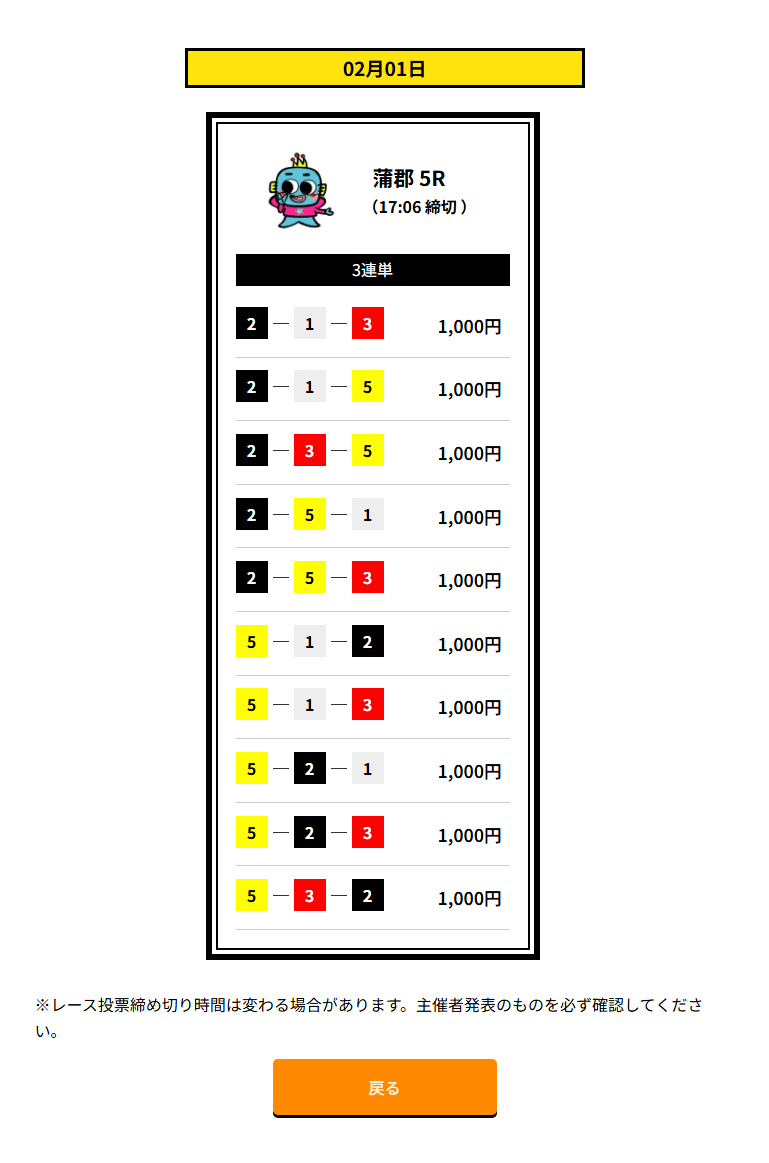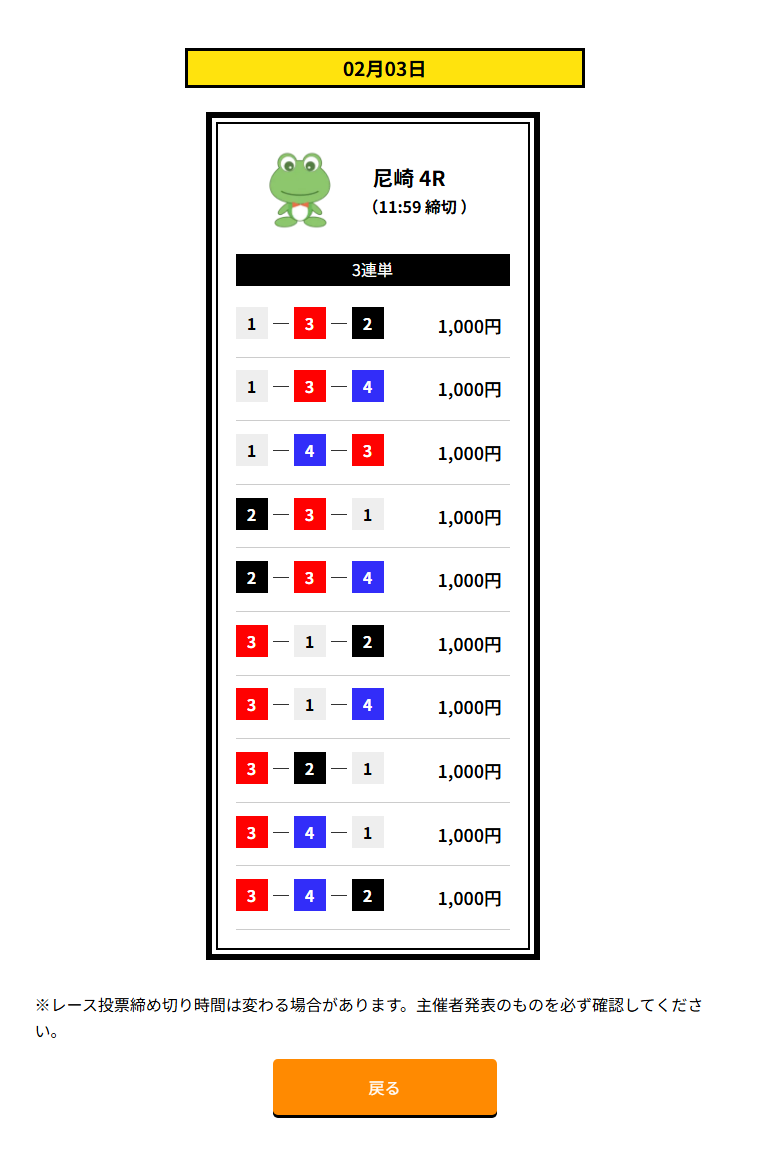 | 買い目 | 3点~10点(3連単) |