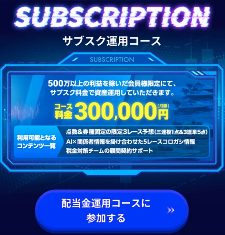 「税金対策チームの契約サポート」という付加価値です。競艇予想サービスの本分は的中精度の高い予想を提供することのはずであり、節税サポートを前面に押し出すのは、むしろ本業で勝負できていない証拠にも見えます。