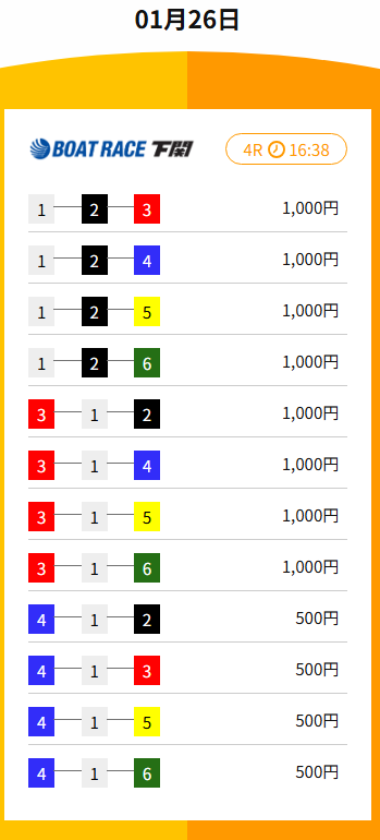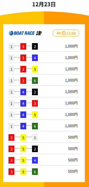 - 買い目:3-1-4(11.6倍)× 2,000円