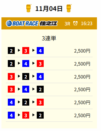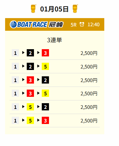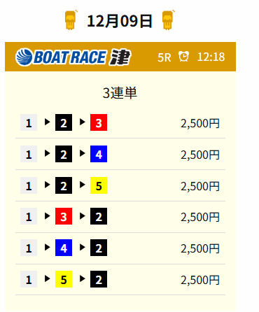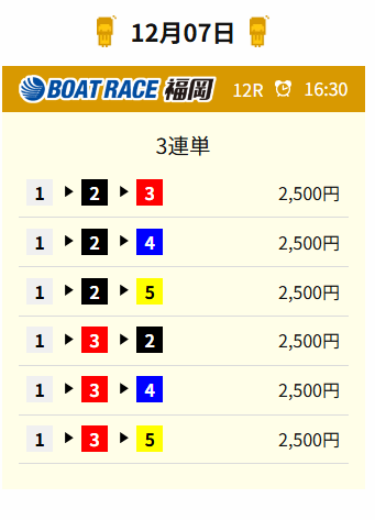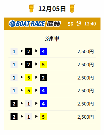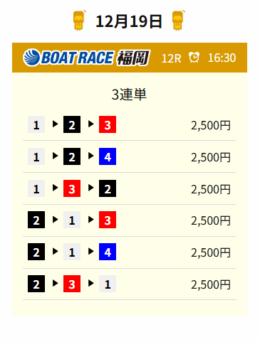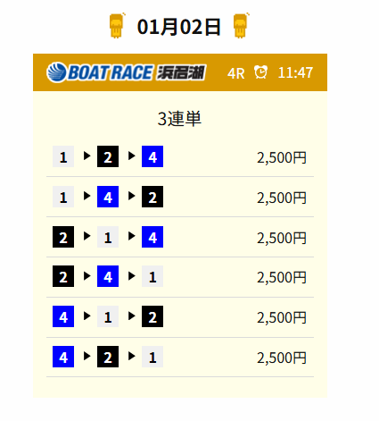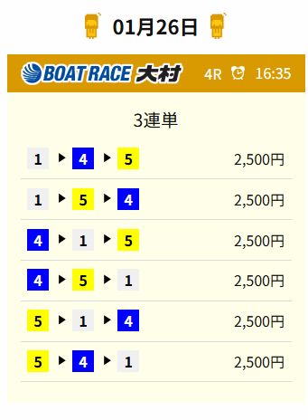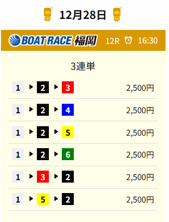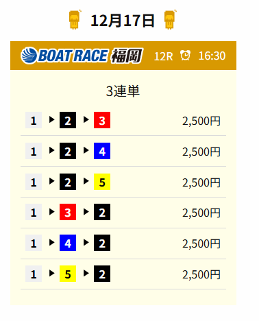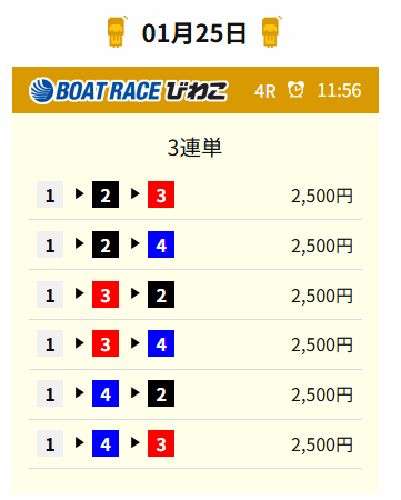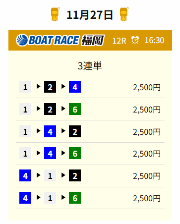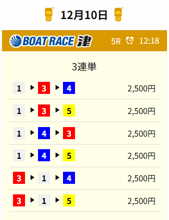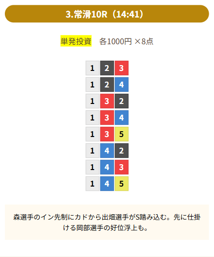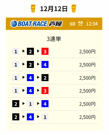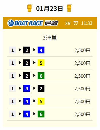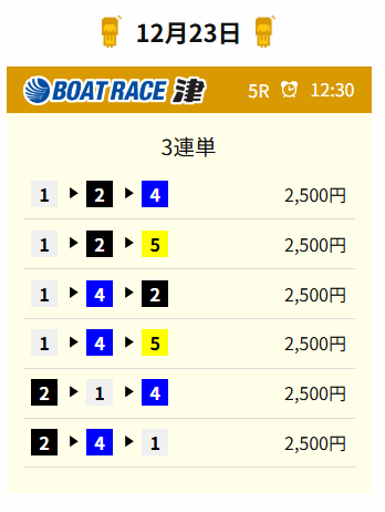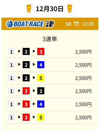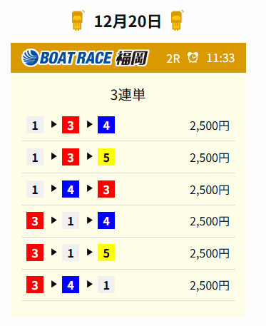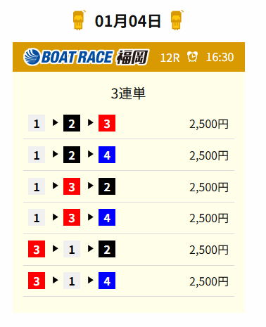 - 買い目:1-4-3(16.2倍)× 2,500円