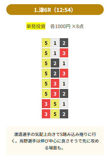 無料予想の買い目の精度はもちろん、資金配分までしっかり計算されていて、リスクを抑えながら着実に利益を積み上げられました。