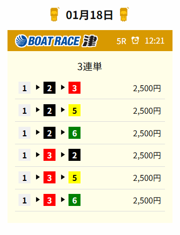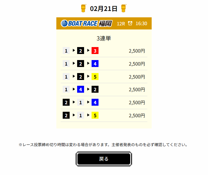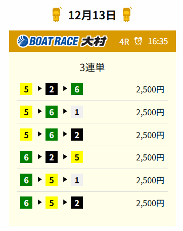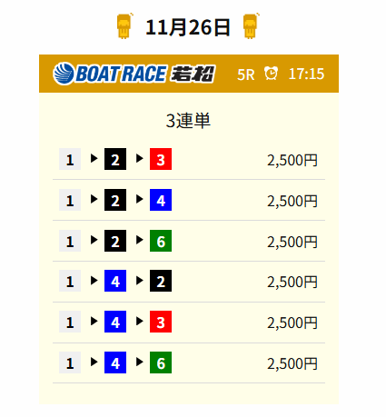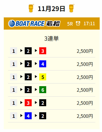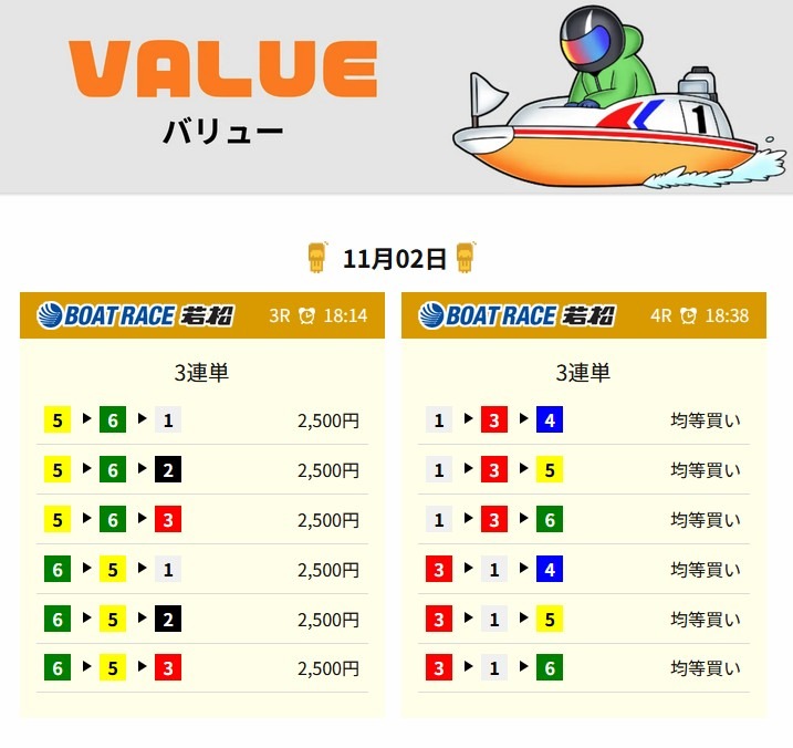 - 若松 3R:6-5-2(50.9倍)× 2,500円