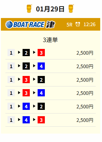| 木 | 2026/1/29 | 津5R | 162 36.4倍 | 不的中