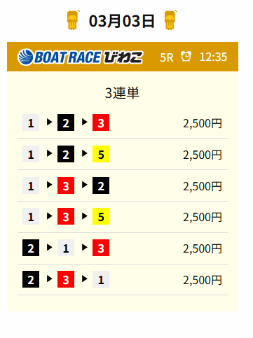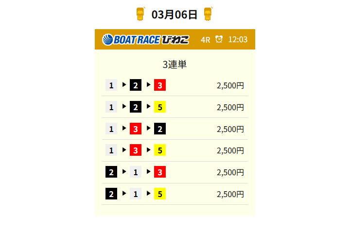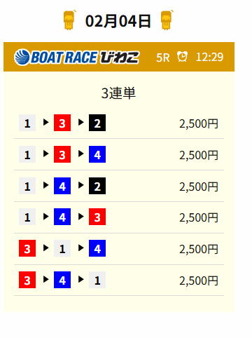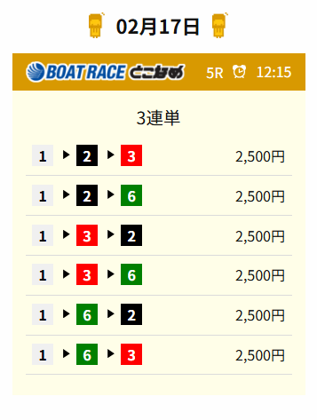 | 金 | 2026/2/6 | 児島6R | 625 141.5倍 | 不的中