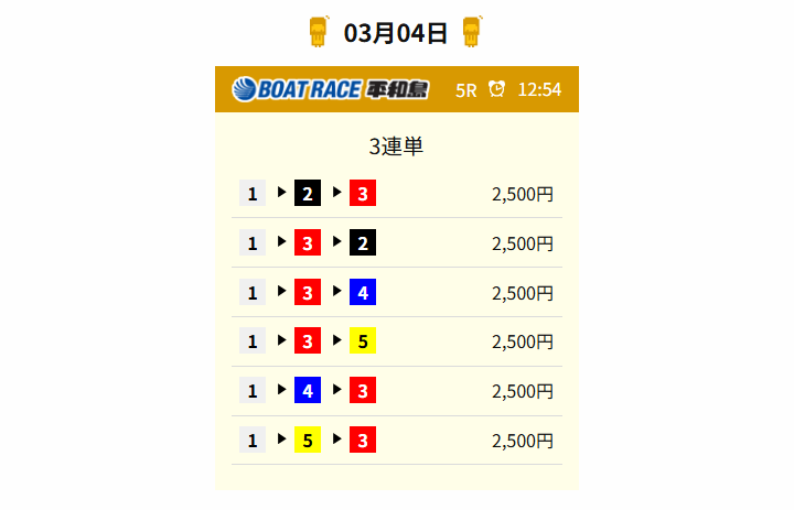 | 水 | 2026/3/4 | 平和島5R | 315 9.9倍 | 165%