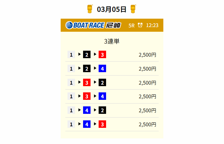 | 木 | 2026/3/5 | 尼崎5R | 123 5.2倍 | 86%