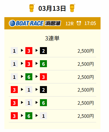 | 金 | 2026/3/13 | 浜名湖12R | 316 9.0倍 | 150%