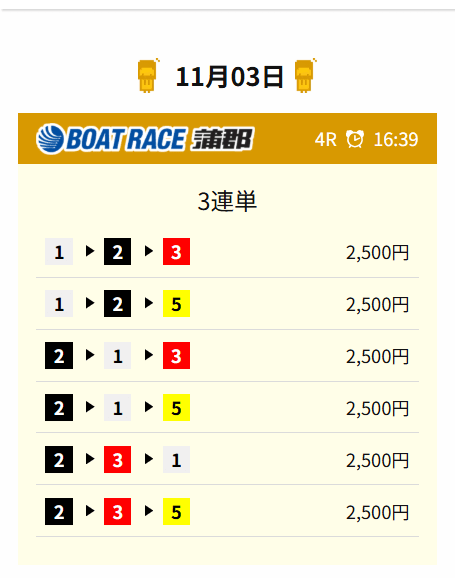 - 買い目:2-3-1(9.9倍)× 2,500円