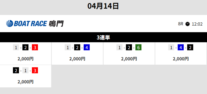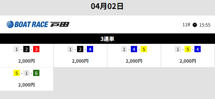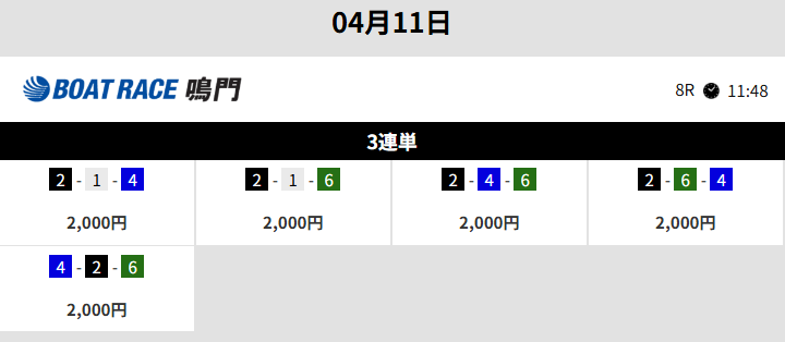 - 買い目:3-2-1(21.4倍)× 2,000円
