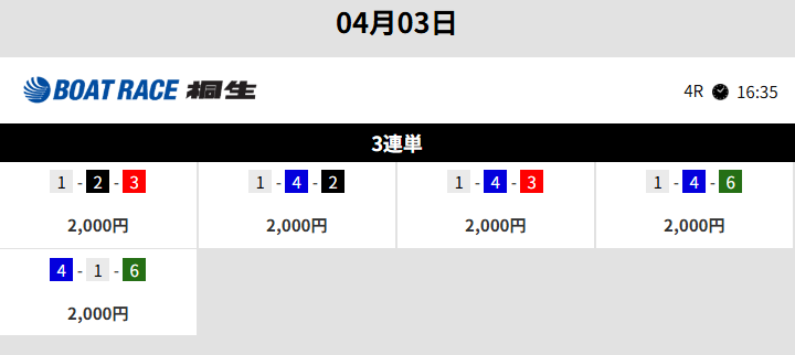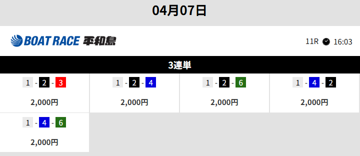 - 浜名湖 7R:1-4-6(20.7倍)× 3,000円