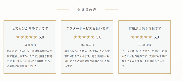 会員募集ページには「会員様の声」としてレビューが掲載されていますが、