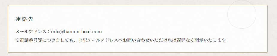 | メール | info@hamon-boat.com |